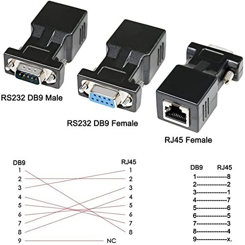 DTECH Adattatore seriale da RS232 DB9 a RJ45 femmina DB-9 a presa RJ-45 (DB9 Male to RJ45 and DB9 Female a RJ45)