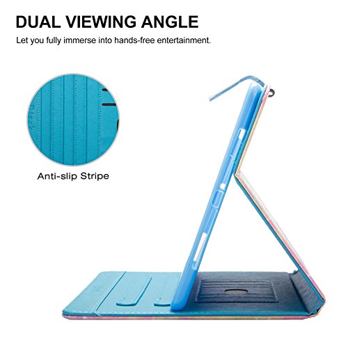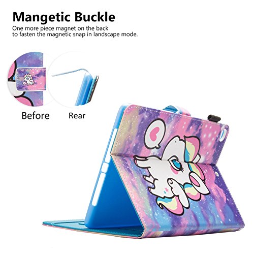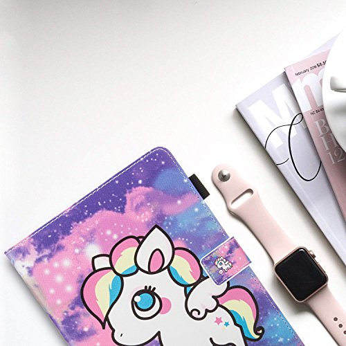 Dteck - Custodia a libro in pelle PU per iPad 9.7 2018/2017, con funzione di supporto e funzione di spegnimento automatico e slot per schede per Apple iPad 9.7, iPad 5a/6a generazione, motivo: Uicorn