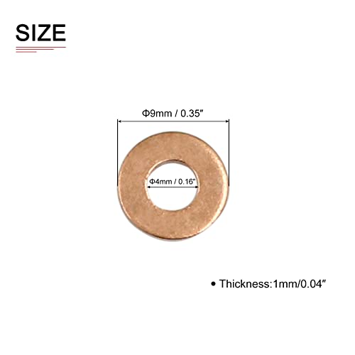 [Rondelle di guarnizione in rame piatte]: Il pacchetto viene fornito con 20 rondelle di guarnizione di rame piatte in 4mm x 9mm x 1mm/ 0.16" x 0.35" x 0.04" (diametro interno*diametro esterno*spessore).