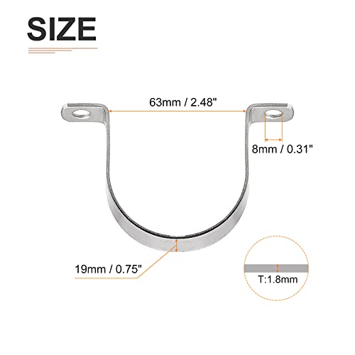 DTGN Cinghia a due fori da 19 mm (larghezza) - 2 pezzi - Buono per fissaggio tubi di diametro industriale 63 mm - morsetto rigido in acciaio inossidabile 304 - tono argento