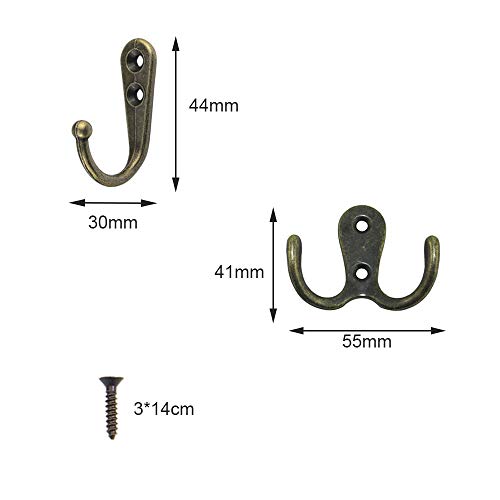 Confezione: 20 ganci appendiabiti in bronzo vecchio stile, 2 stili, 1 gancio con 2 viti, per un totale di 40 accessori per viti. Può essere decorato secondo le tue preferenze, ganci per mobili.