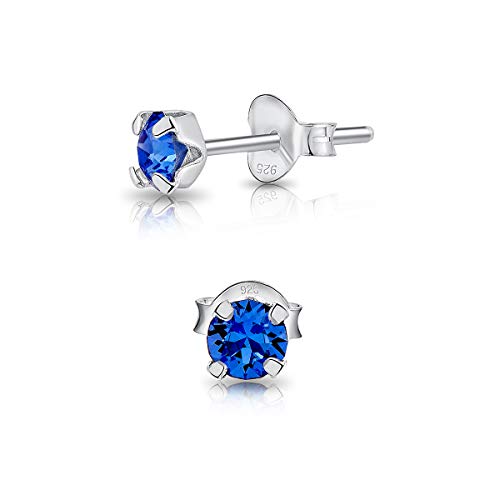 DTPsilver - Molto PICCOLI Orecchini a Perno - Argento 925 con Cristalli Swarovski® Elements Rotondi - Diametro 4 mm - Colore: Blue Zaffiro