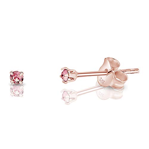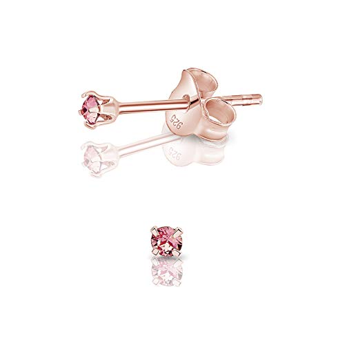 DTPsilver - Molto PICCOLI Orecchini a Perno - Argento 925 Placcato in Oro Rosa con Cristalli Swarovski® Elements Rotondi - Diametro 2 mm - Colore: Rosa Chiaro