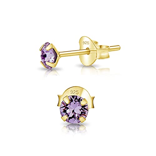 DTPsilver - Molto PICCOLI Orecchini a Perno - Argento 925 Placcato in Oro Giallo con Cristalli Swarovski® Elements Rotondi - Diametro 4 mm - Colore: Viola