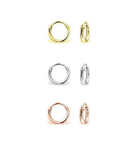 DTPsilver Orecchini da donna piccoli a cerchio, in argento Sterling 925, placcati in oro e in oro rosa, set di 3 coppie, spessore 1,2 mm e diametro 8 mm