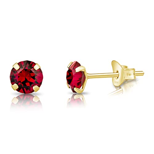DTPsilver - PICCOLI Orecchini a Perno - Argento 925 Placcato in Oro Giallo con Cristalli Swarovski® Elements Rotondi - Diametro 5 mm - Colore: Rubino