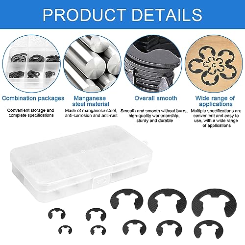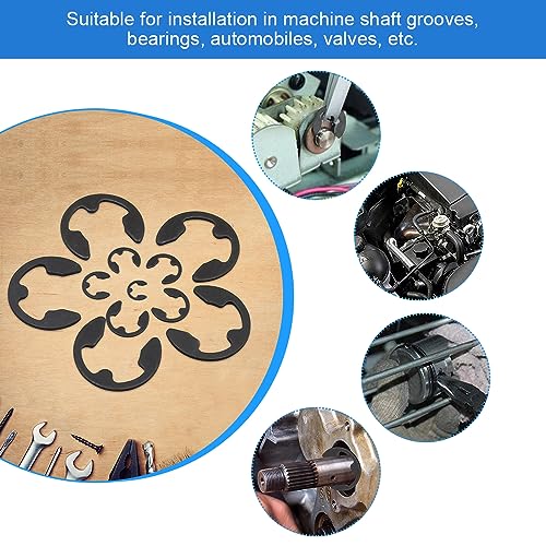 【Prestazioni affidabili】 L'anello di sicurezza di tipo E grazie alla progettazione e alla produzione di precisione, prestazioni stabili e affidabili, può trovarsi in condizioni di lavoro estreme per mantenere buone condizioni di lavoro, per garantire il normale funzionamento e la durata dell'apparecchiatura.