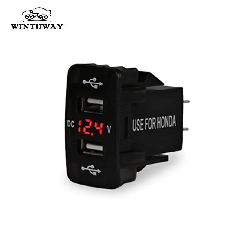 Red Dual USB Charger LED Digital Display Voltage Meter for Honda Civic Fit Accord CR-V XR-V Stream Odyssey Acura Saloon Stream