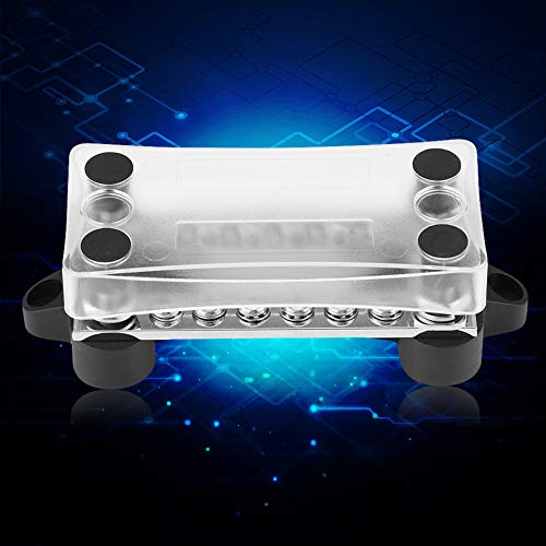 Dual 6 Terminal Bus Bar - 100A BusBar Block with Cover, Ground Distribution, Power Distribution Terminal Block w/ 4 Screws + 1 Sticker, for Car Boat Marine Caravan