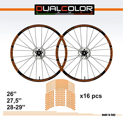 DualColorStampe Adesivi Cerchi Bici 26'' - 27,5'' - 28-29'' Pollici Ruota Bici MTB Bike Stickers Cerchi MTB accessori MTB B0048 (27,5'' Pollici, Arancione)