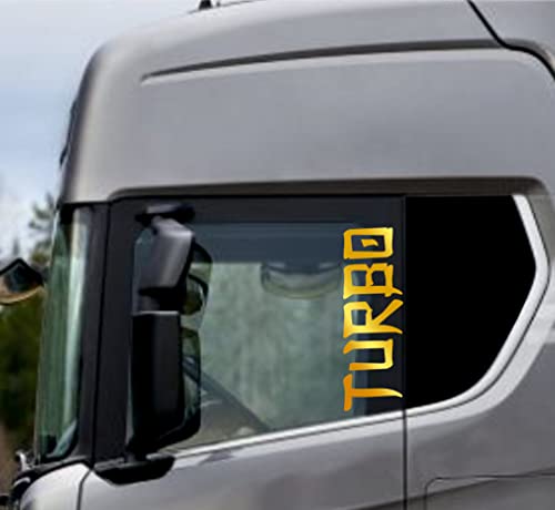 DualColorStampe Adesivi Compatibili con Scania Daf Iveco Man Camion accessori camion stickers camion finestrino TURBO COD.0305 (Oro 91)