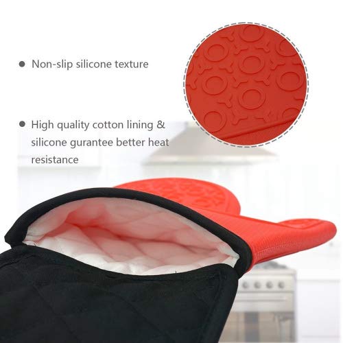 Dualeco guanti da forno in silicone, doppio guanto impermeabile da forno, grande resistenza al calore, per barbecue, cucina, forno a microonde, pizza, 1 paio Red