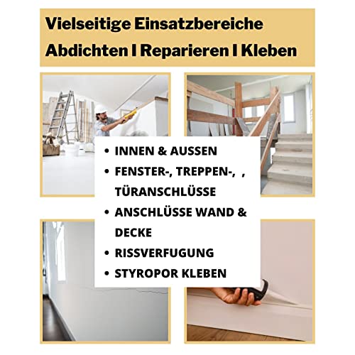 Per stuccare porte e finestre, cassettoni per tapparelle, decorazioni soffitto, pannelli leggeri, tubi in plastica e per la stuccatura delle crepe.