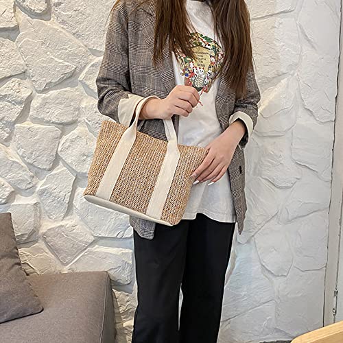 Dubute Borse da donna in paglia grande estate spiaggia Tote borsa a tracolla con manico tessuto, Beige, Taglia unica