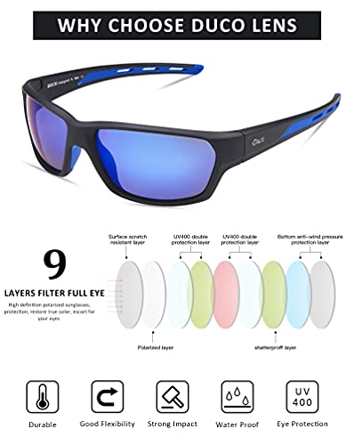 DUCO polarizzato occhiali da sole per la pesca in bicicletta Golf outdoor sport occhiali da sole tonalità per le donne e gli uomini infrangibili TR 90 telaio 6201 (BLU)