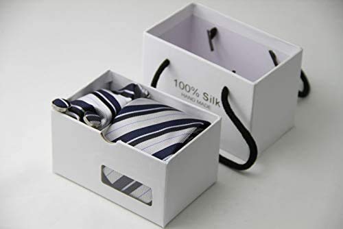 Ducomi Silk Cofanetto Coordinato Uomo con Cravatta, Gemelli e Fazzoletto da Taschino in Seta 100% - Disegnato in Italia e Cucito a Mano - Confezione Regalo Originale ed Elegante (Exquisite)