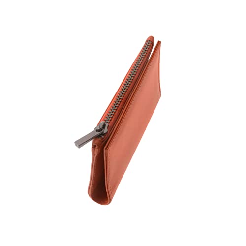 DUDU Portafoglio Porta Carte di credito Uomo in Vera Pelle Portatessere Mini Sottile con Zip Arancio