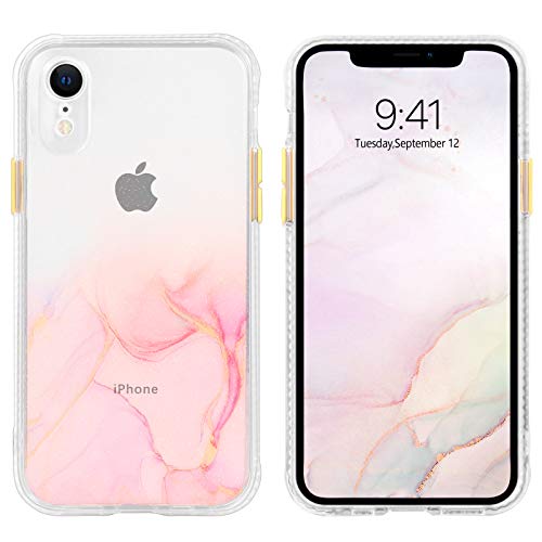 DUEDUE - Cover compatibile con iPhone XR, antiurto, protezione rigida, motivo glitterato marmo, colore: Rosa