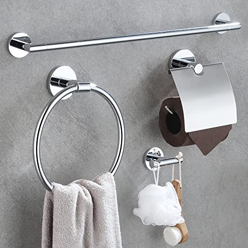 DUFU Portasciugamani da Parete 4 Pezzi Set di Accessori da Bagno con Anello Portasciugamani 60cm Porta Salviette Porta Carta Igienica Doppio Gancio Acciaio Inossidabile Zincato Argento