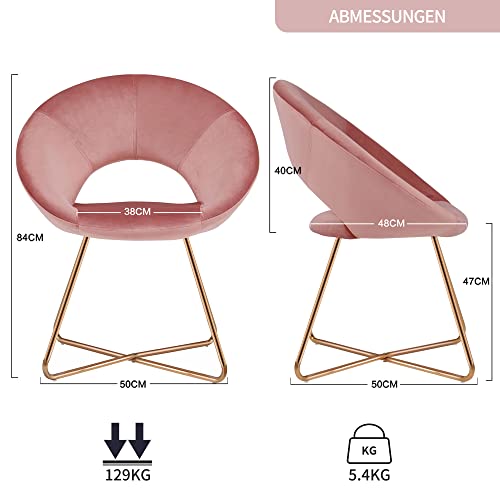 Duhome Sedia da Sala da Pranzo Sedia di Sala d'attesa conferenza Design Straordinario con Piedini in Metallo Sedia Imbottita 439D, Colore:Rosa 2, Materiale:Velluto