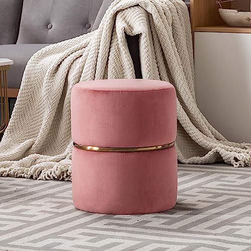 Duhome Sgabello Rotondo Imbottitura in Tessuto Anello in Metallo Dorato 9123, Colore:Rosa, Materiale:Velluto