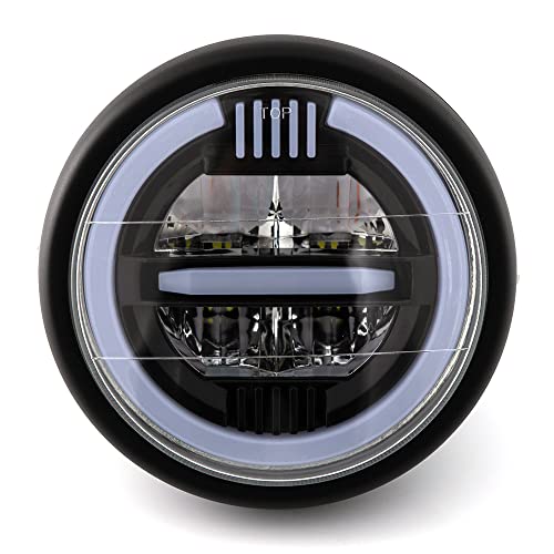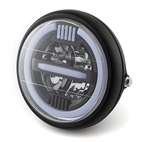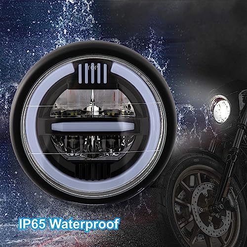 DUILU Faro Proiettore LED Rotondo,Faro per Moto universali Faro Moto LED Hi/Lo Fascio DRL Anteriore Faro Lampada Impermeabile (7,5 Pollici)