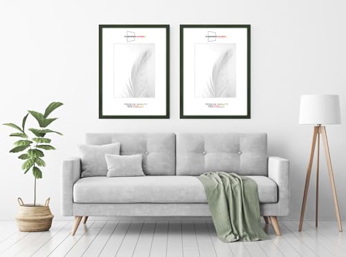 Duisburger-Rahmen24 DR24 Cornice 25x65 (Verde Sfocato) su Misura, Telaio in Legno MDF Largo 35 mm Incluso Vetro Sintetico antiriflesso, Parete Posteriore Stabile, perni da Piegatura e Ganci