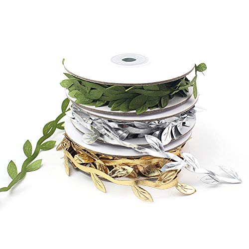 Duisoad FUJIE 3 Rotoli Nastro di Foglie Artificiali Piante Artificiali Nastro di Raso Tessuto Appesa Foglie di Edera per Matrimoni, Decorazioni Fai da Te Creative, L'Oro/Argento/Verde