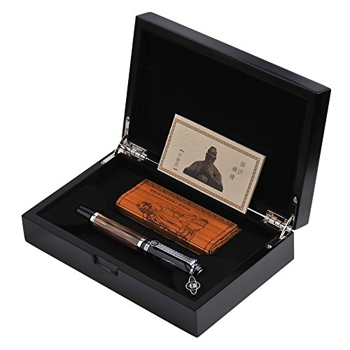 Duke 551 Confucio stilografica con inchiostro Refill Converter, pennino medio naturale bambù canna regalo penna con scatola regalo in legno