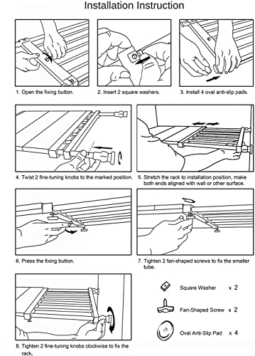 Facile da Installare: Nessun attrezzo necessario, usa solo attrito e tensione e funziona molto bene. Nessun danno alla tua parete decorativa, i cuscini su entrambe le estremità del rack non solo aumentano l'attrito, ma assicurano anche che il tuo armadio non venga graffiato