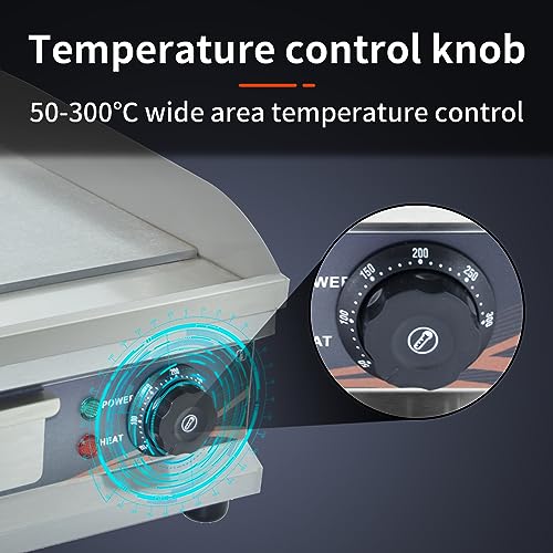 DULNICE Piastra Elettrica Professionale Ghisa Commerciale Grill Elettrico Acciaio Inox con Paraspruzzi e Contenitore di Raccolta Grasso, 1500W