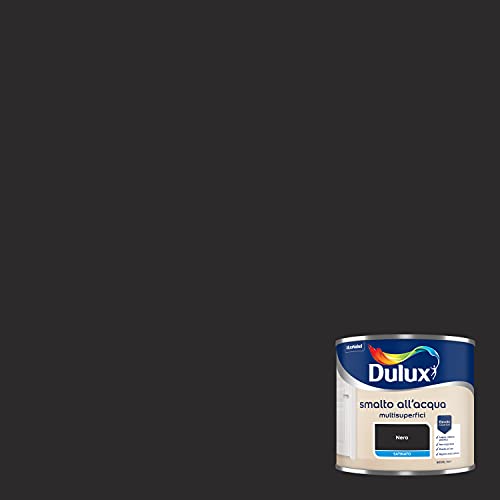 Dulux Smalto Satinato all'Acqua per Metallo Plastica e Legno Pronto all'Uso per Esterni e Interni, 0.5 Litri, Nero
