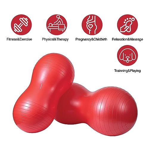 DumanAsen Palla per esercizi con pompa, palla di arachidi, palla fitness, palla per yoga, pilates, allenamento di base e fisioterapia (90 cm x 45 cm, rosso)