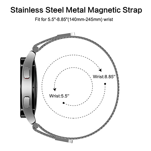 【Design】: cinturino Galaxy Watch 4 Classic 42mm, non c'è bisogno di una fibbia, basta attaccare per bloccare facilmente il cinturino, il magnetico è fermo e non cade e il magnetico è forte. Adatto alle dimensioni del polso: 5.5"-8.85"(140mm-248mm).