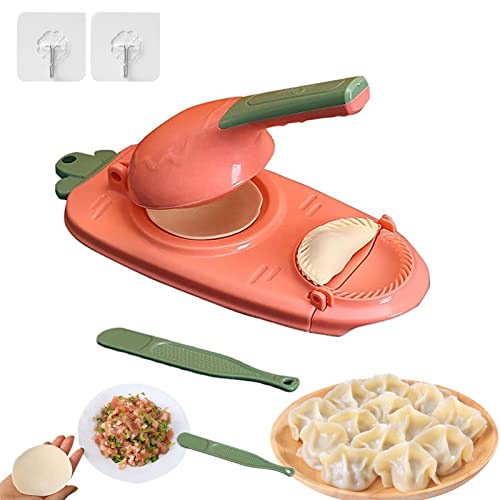 2 in 1 Dumpling Maker, Kitchen Dumpling Making Tool Baking Pastry Manual Artifact for Pressing Dumpling Skin Wrapper Mould Dough Press Maker,Manual Dumpling Maker Mould (Pink)