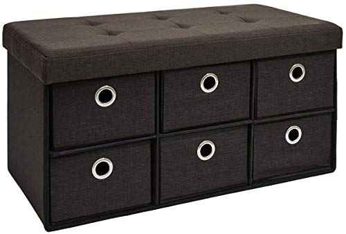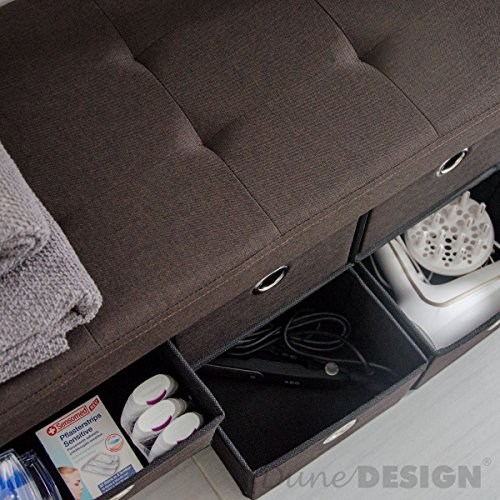 DuneDesign Ottomana Pieghevole 76x38x38cm incl 6 cassetti 80L Panca Contenitore Cassapanca Imbottita Marrone Scuro