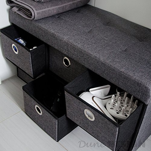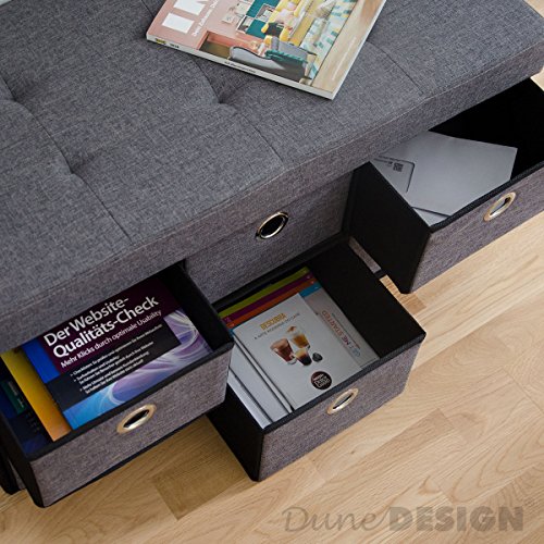 DuneDesign Ottomana Pieghevole 76x38x38cm incl 6 cassetti 80L Panca Contenitore Cassapanca Imbottita Grigio Scuro