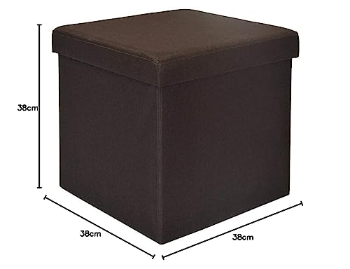 DuneDesign Poggiapiedi a cubo 38cm apribile Contenitore Sgabello Quadrato Imbottito Pieghevole Pouf Contiene 42L Marrone Scuro