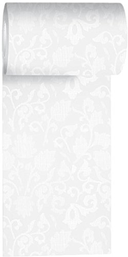 Duni Nastro da tavolo in stampa damascata Dunicel, bianco, 15 cm x 20 m