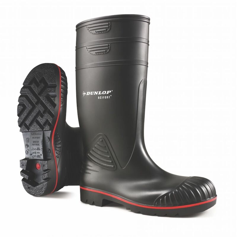 la tecnologia Dunlop applicata alle calzature di sicurezza ha sviluppato prodotti unici e inimitabili, progettati e realizzati per soddisfare le esigenze dei clienti e delle diverse condizioni climatiche, con l'obbiettivo di dare comfort, protezione e massima durata. La struttura è realizzata in Acifort con una miscela di PVC, gomma nitrilica e polimeri che conferiscono maggiore resistenza e comfort per tutta la giornata. La parte anteriore è stata rinforzata con un particolare disegno a coste che migliora la resistenza all'abrasione;