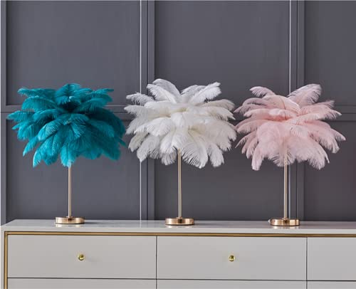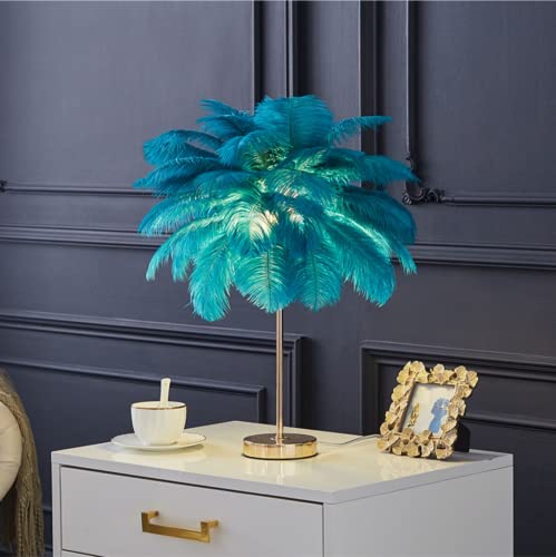 DUNMW Lampada da tavolo creativa in piuma di struzzo verde, lampada da comodino, elegante paralume, luce notturna, illuminazione da tavolo per soggiorno, camera da letto, ricaricabile