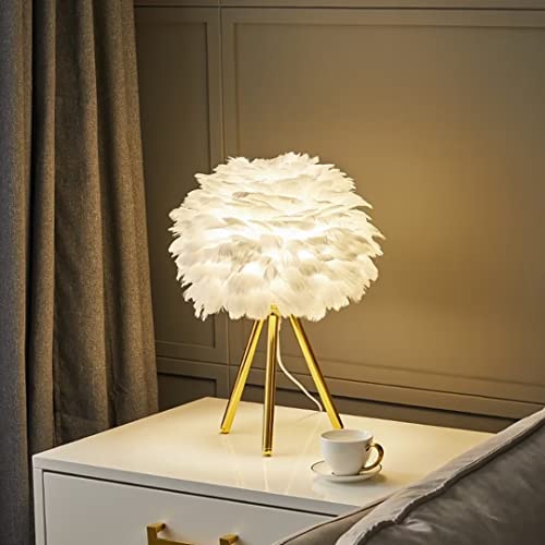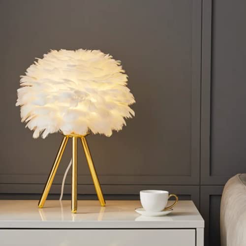 DUNMW Lampada da tavolo in piuma bianca Lampada da comodino con elegante asta di supporto dorata Lampada da tavolo in piuma decorativa Lampada da tavolo in piuma per camera da letto, soggiorno