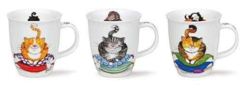Dunoon - Tazza in porcellana Bone China, motivo: gatti (grigio)