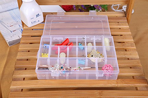 DUOFIRE Scatola in Plastica Stoccaggio Scatole Divisori Mobili Organizzatore Contenitore per Dell'orecchino Strumento Accessori (24 Scomparti x 2 Confezioni, Trasparente, Blu)
