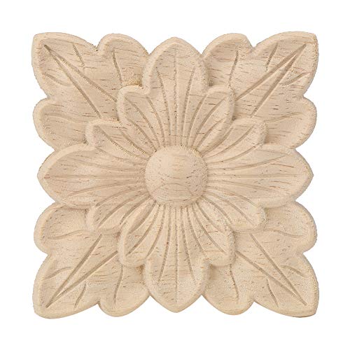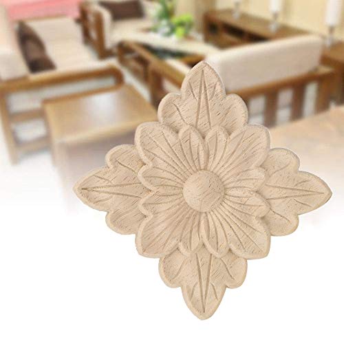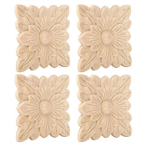 Duokon 4 Pezzi 10x10 cm Intaglio a Scacchi Applique, Decorazione in Legno Intagliato, Stile Vintage Europeo Appliques per Mobili in Legno, Non Verniciato, Decorazione per Porte e Mobili