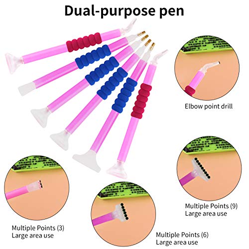 ֎ 【3 tipi di stick di colla diamantata】 Il set di pittura diamante viene fornito con 3 diversi tipi di penne diamantate, che possono legare 3/6/9 diamanti allo stesso tempo. Gli accessori per pittura diamante 5d sono molto adatti per principianti e professionisti. Possono completare vaste aree di diamanti dello stesso colore in modo più efficiente, in grado di soddisfare il tuo uso quotidiano.