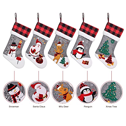 Confezione da 5 calze di Natale: set di 5 calze di Natale con design grigio pieno di texture, personaggi natalizi 3D in 5 stili: orso, albero di Natale, pingiun, alce, Babbo Natale, pieni di sentimenti natalizi. Il colore classico e festoso aggiungerà alla tua casa un senso di spirito natalizio. Un regalo di Natale speciale per i tuoi bambini, famiglia, ragazze e così via.