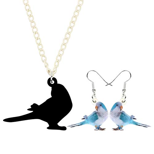 Simpatico set di gioielli per pappagallo blu monaco pappagallo: un ordine include un paio di orecchini in acrilico pappagallo e un pezzo di collana.