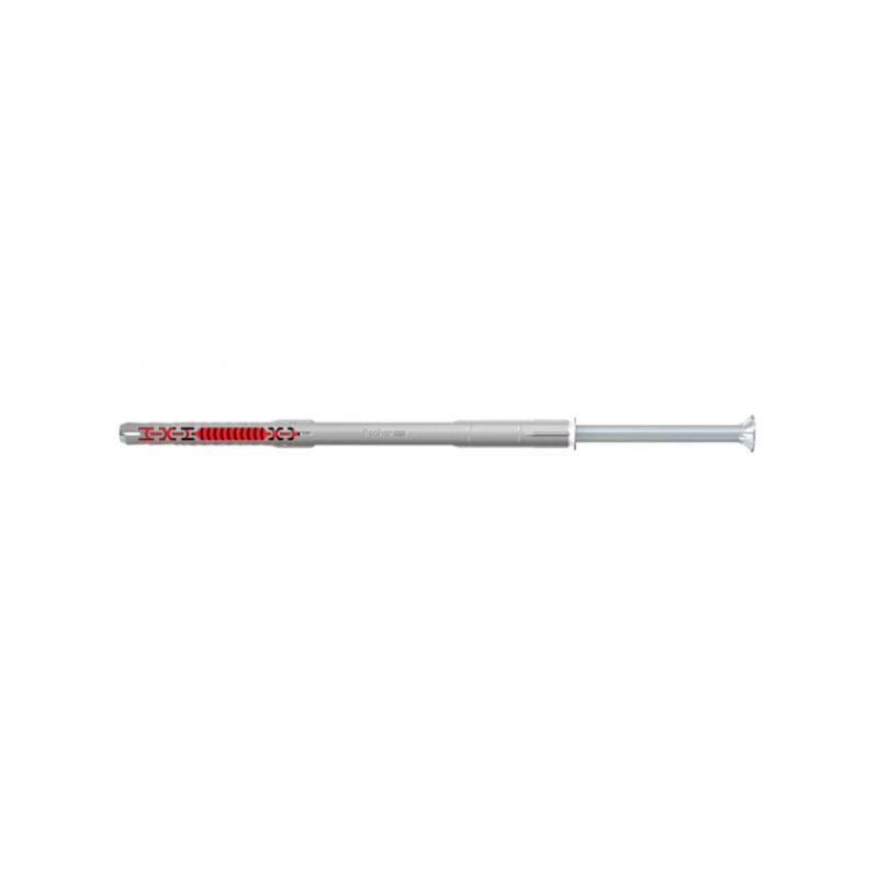 CARATTERISTICHE: DuoXpand 10x160 T gvz con vite di sicurezza zincata a testa svasata piana evita fratture in materiali porosi e cavi e permette l'installazione in prossimità dei bordi rendendolo quindi perfetto per le costruzioni in legno e il fissaggio di porte, finestre e ringhiere. Il corpo del tassello consente due possibili profondità di ancoraggio (140 e 160 mm) per un uso versatile, in tutte le classi di materiali da costruzione secondo le norme ETA. Vantaggi La combinazione intelligente di materiali e design si adatta a tutti i materiali da costruzione e permette un uso universale. L'innovativa geometria a lamelle permette un'espansione adattiva nel materiale da costruzione: questo evita fratture nei materiali cavi e porosi e consente l'ancoraggio in prossimità dei bordi. Il corpo principale in nylon grigio di alta qualità garantisce la resistenza a carichi elevati, mentre la componente rossa assicura flessibilità e un'espansione ottimale. Le nervature laterali del tassello