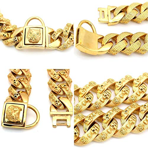DUPFY Collare per Cani,32MM Collana con Collare per Cani in Oro, Collare di Lusso per Cani,Collare per Cani in Acciaio Inossidabile per Labrador Golden Retriver Pastore Tedesco Bulldog 45cm